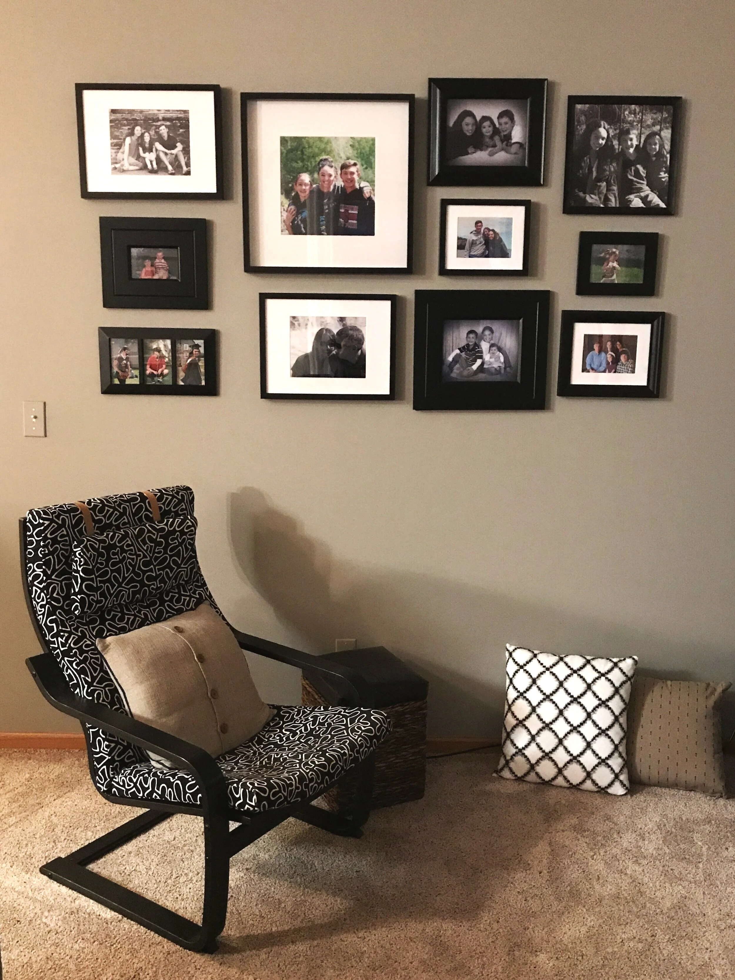 You can’t really do this wrong. I have a client who literally has photos in frames covering the walls of an entire room. They are a complete mix of styles, frames and colors and they are glorious. You can feel the love she has for her family when you walk into that room. It’s amazing.