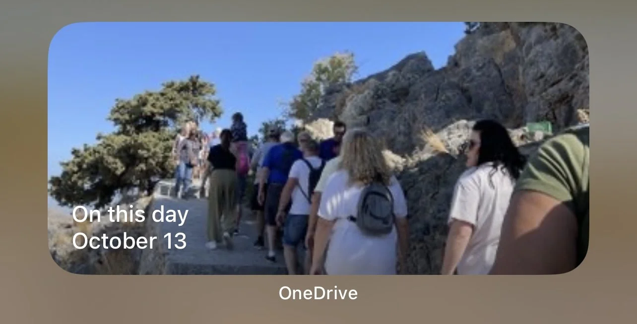 And the OneDrive widget gives me memories from this day last year. This widget has been fun this week because last year at this time I was in Greece. All I have to do is tap on the widget to see the rest of the photos I took that day.