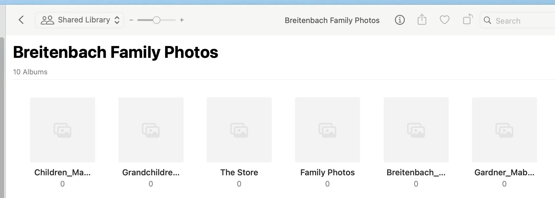 I find this confusing, especially if you’ve invested time in organizing your family library using albums and folders. Your spouse/partner will not be able to see that organization.
