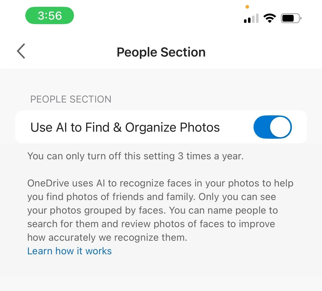 Toggle on ‘Use AI to Find & Organize Photos’